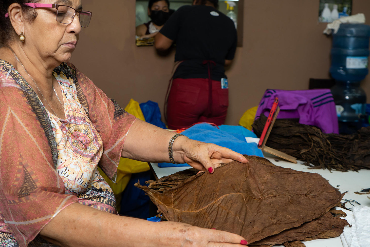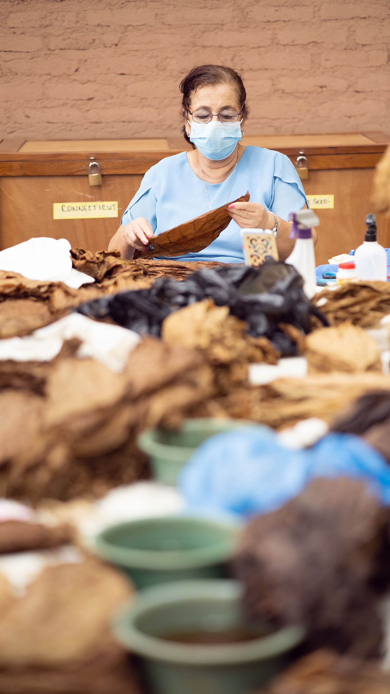 It doesn’t matter the quality of fillers if you don’t have a good wrapper selecting and casing department lead by 30 years of experience with Dona Reyna leader of a vital part of the process. Water spraying is a key factor in knowing how much water a wrapper needs depending on the condition and type of wrapper. Pennsylvania Broadleaf and San Andres, being really thick, need a lot of water spraying. Ecuadorian sun-grown wrapper needs to be treated with extra care to not stain or rotten to a point of breaking when smoking the cigar.